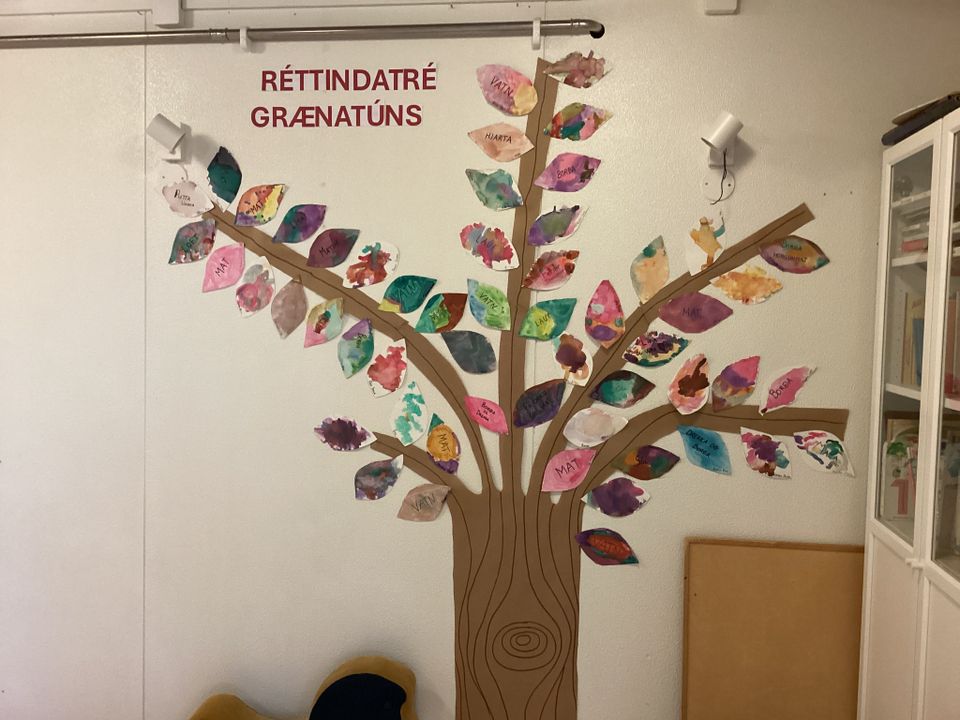 Nýjasta verkefnið okkar er "Réttindatré". Börnin máluðu laufblöð á tréð og við ræddum hvað börn þurfa til að vaxa og dafna við vini okkar á öllum deildum .